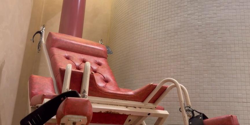 ホテルに到着し、高速イスに座ってもらい、バンドを付け拘束。キスをして、おっぱいを揉んで、乳首を舐めて、クンニをして、